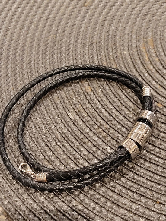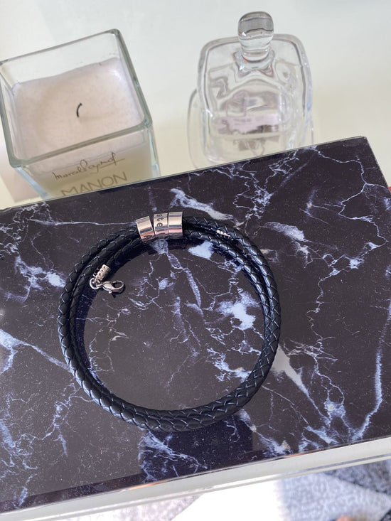 Brățară Bărbați din Piele Neagră – Personalizabilă cu Finisaje în Argintiu sau Aur